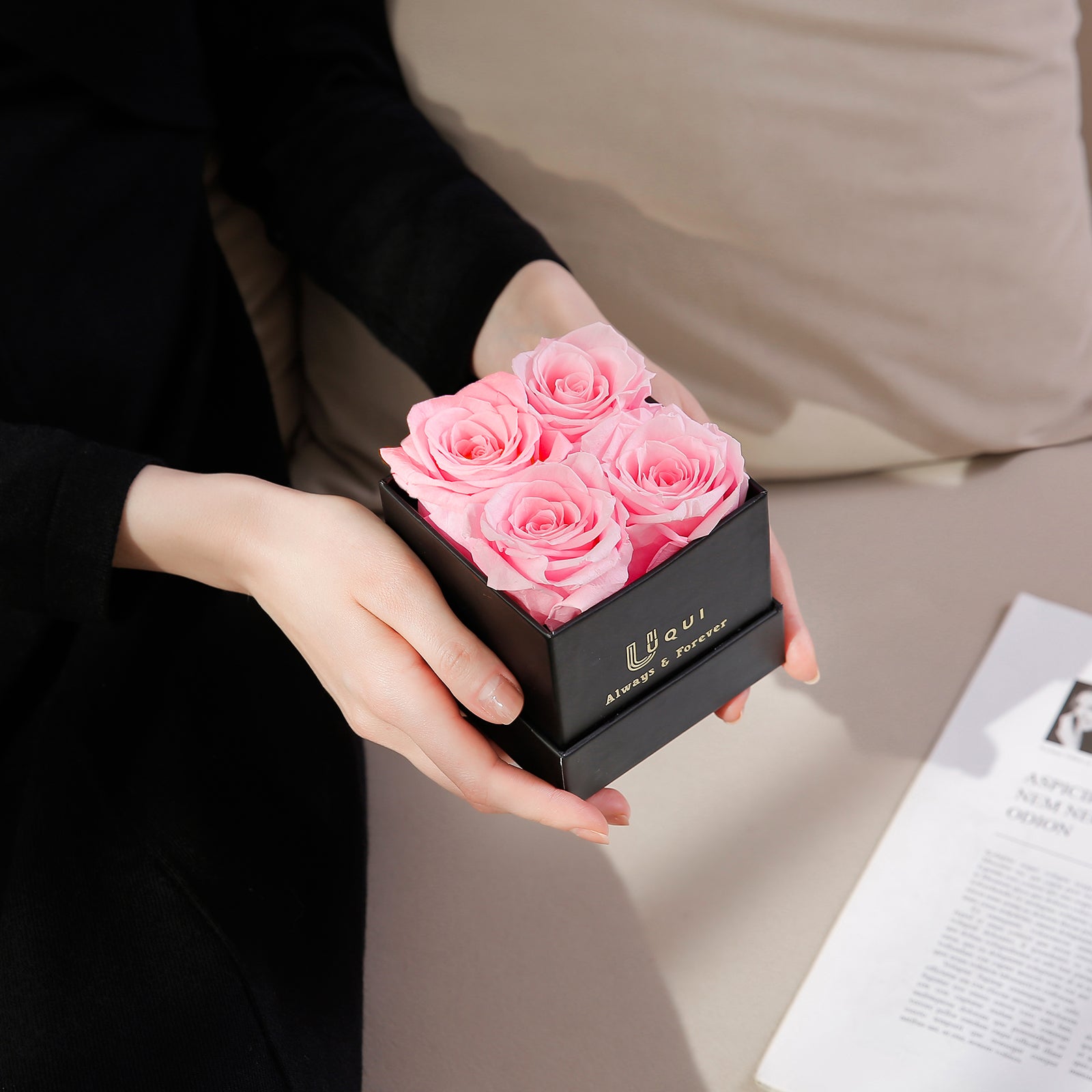 - Additional Notes: U UQUI preserved roses are non-toxic and fragrance-free, if you want the forever flower to be scented, you can pour a little perfume or essential oils into the bottom of the rose box. With careful care, valentines roses that last a year, 2 years, 3 years, or even timeless, to be ever gifts and decorations.