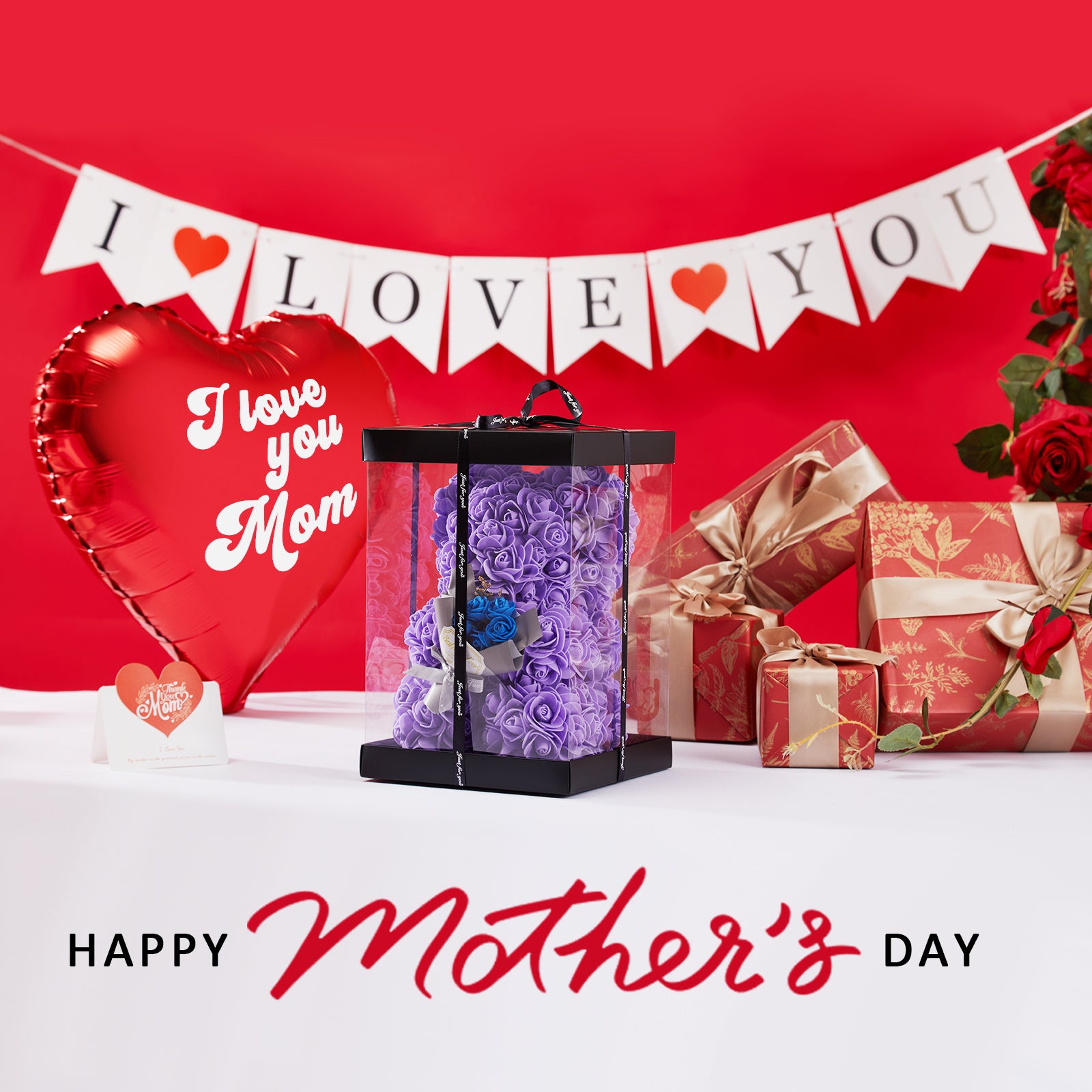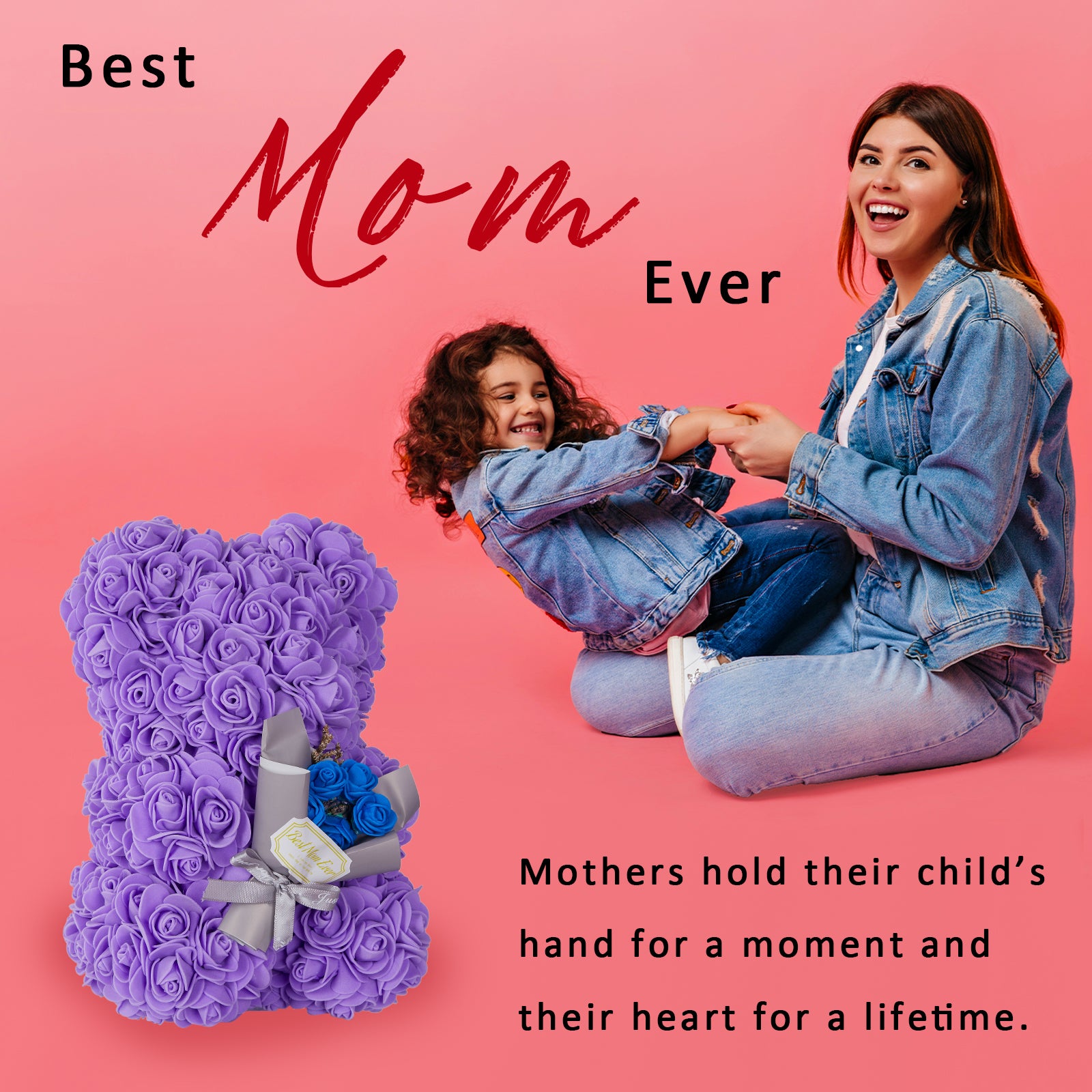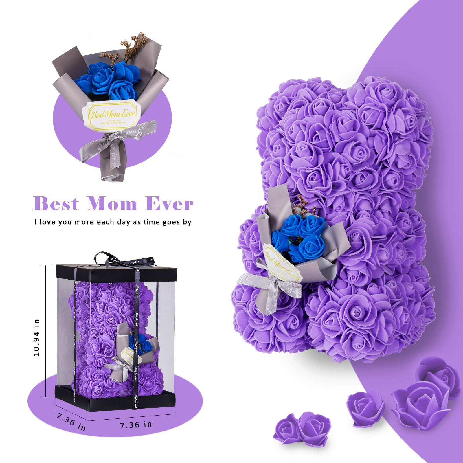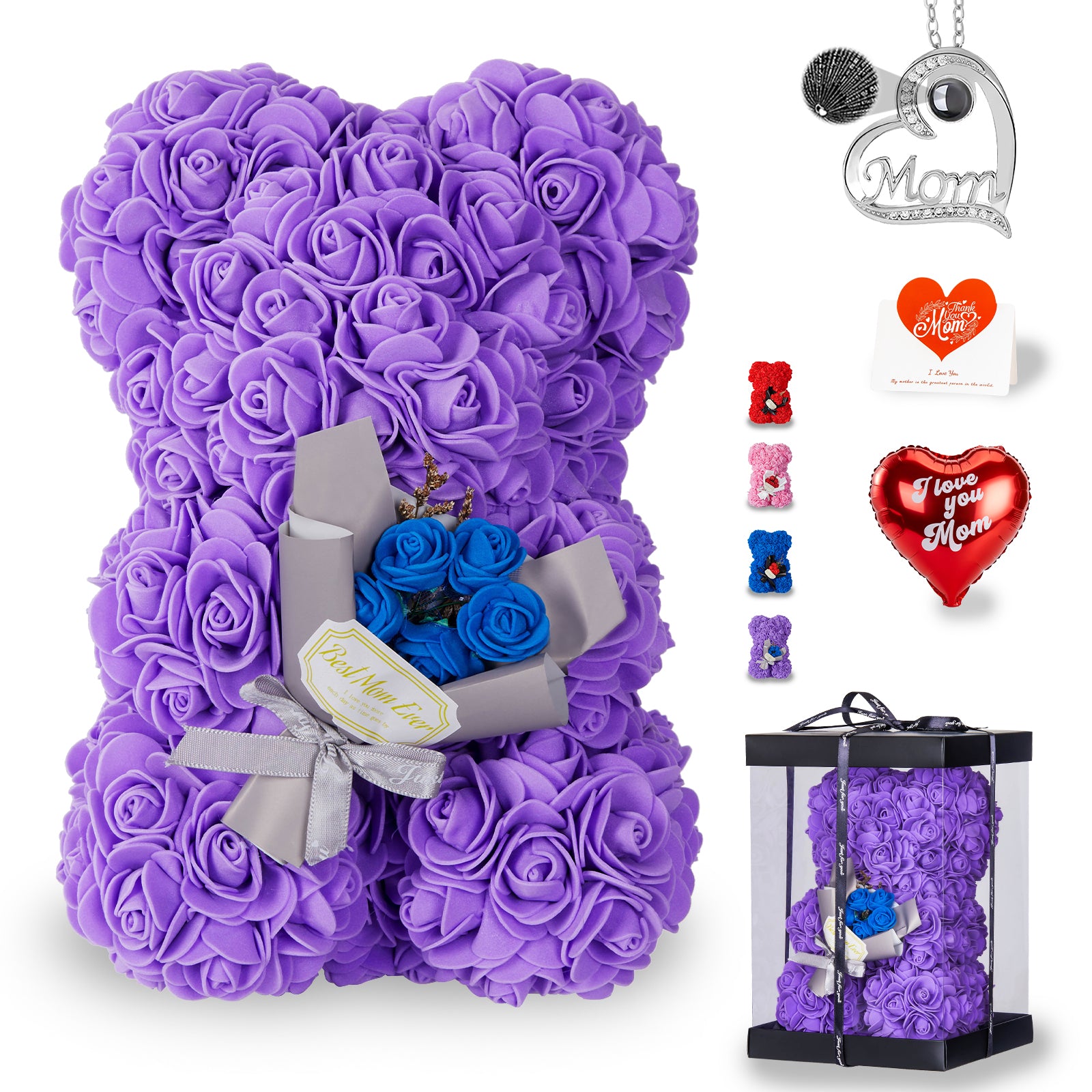 - Multi-surprise Valentines Day Gift Set -- In response to the needs of the majority of rose bear lovers, the new u uqui valentines day rose teddy bear with bouquet series is officially launched. As great valentines gifts for your loved ones, u uqui's well-prepared gift set includes 1* Purple Rose Bear with “Best Mom Ever” Bouquet + 1* Gift Box + 1* Mom Necklace I Love You in 100 Languages + 1* I Love You Mom Balloon + 1* Greeting Card.