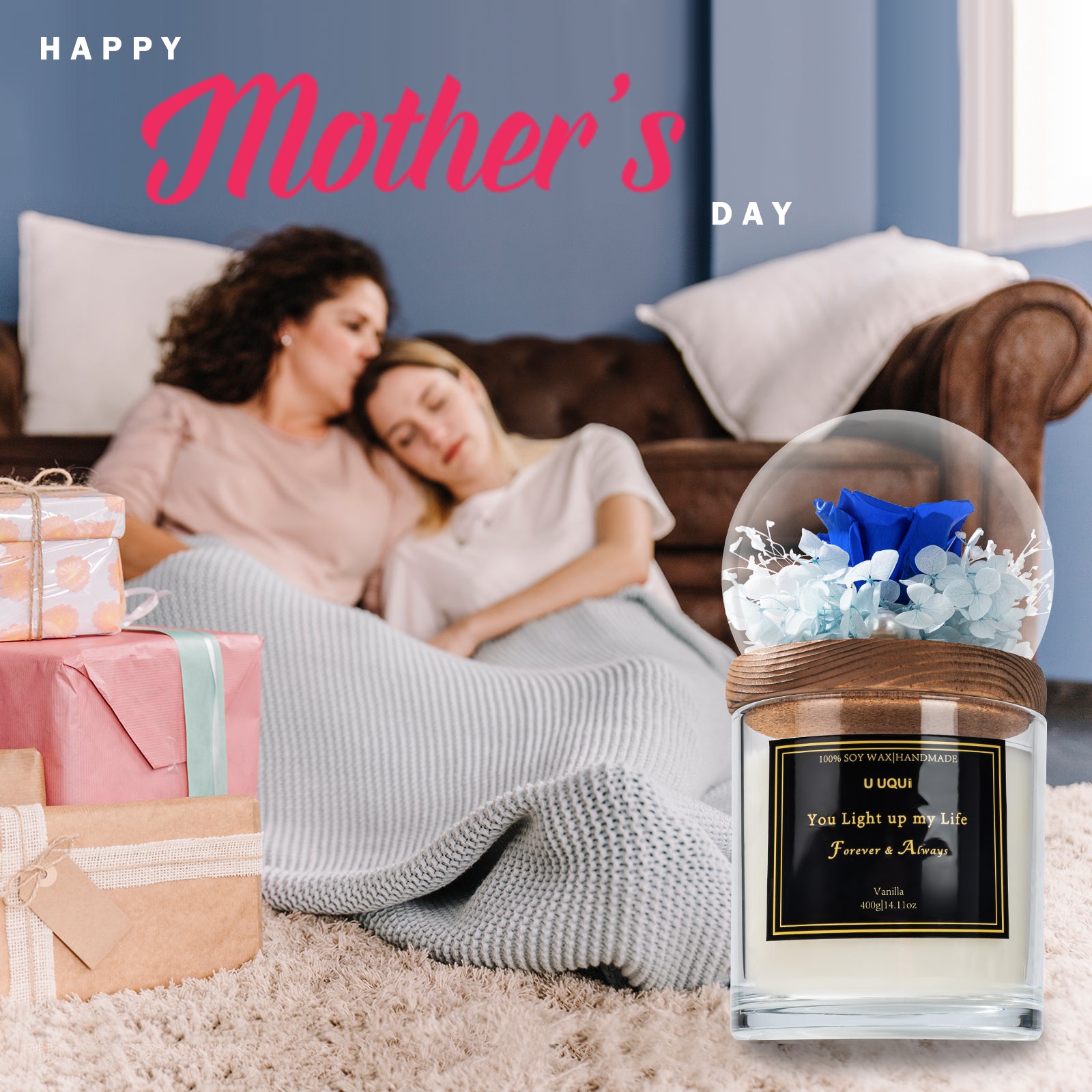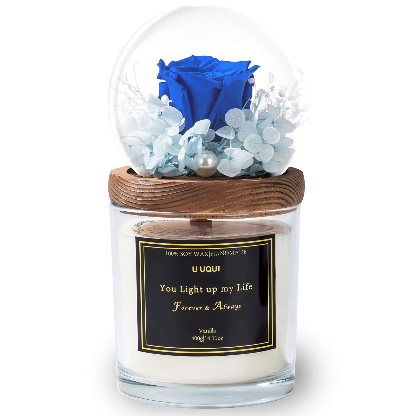 I just adore the idea of the ‘Forever Rose’ that can be admired and enjoyed for years. This arrangement in glass dome above the scented candle is adorable. I would love someone to gift this set to me. It has a fun presentation because of the cute box. The set includes the vanilla cupcake scented candle that had my son convinced I had baked cupcakes. (That’s cute.) The scent is hitting your nose as soon as you open the box. The set also includes a cute card.The candle can be enjoyed for about 70 hours and the rose can last 1-3 years, likely based on the user following the recommendations because that’s a window of time that matters. Naturally, I hope it lasts three years. This gift serves two purposes it is a decorative scented candle a forever rose that can last 1-3 years - a keepsake. The message on the candle relays that the person lights your life. That’s a touching sentiment to convey to someone you value.The rose and the accompanying flowers are beautiful and beautifully preserved. This set includes hydrangeas, baby breath and the rose. I don’t know what the little pink flowers are but they add color and beauty to the arrangement.Additionally, the dome is reusable and so is the jar the candle is in. The images provided by U UQUI are spot on. I look forward to ordering these for myself and as gifts for years.
