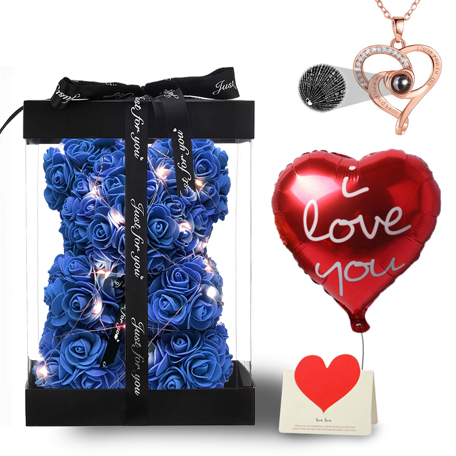 - Multi-surprise Valentines Day Gift Set -- Are you looking for valentines day gifts for her? May be it’s hard to pick best valentine's day gifts for her of what you want. Now, here is the perfect 6 in 1 gift set prepared for you, which includes 1* red rose bear + 1* gift box + 1* i love you necklace 100 languages + 1* heart balloon + 1* greeting card + 1* string lights.