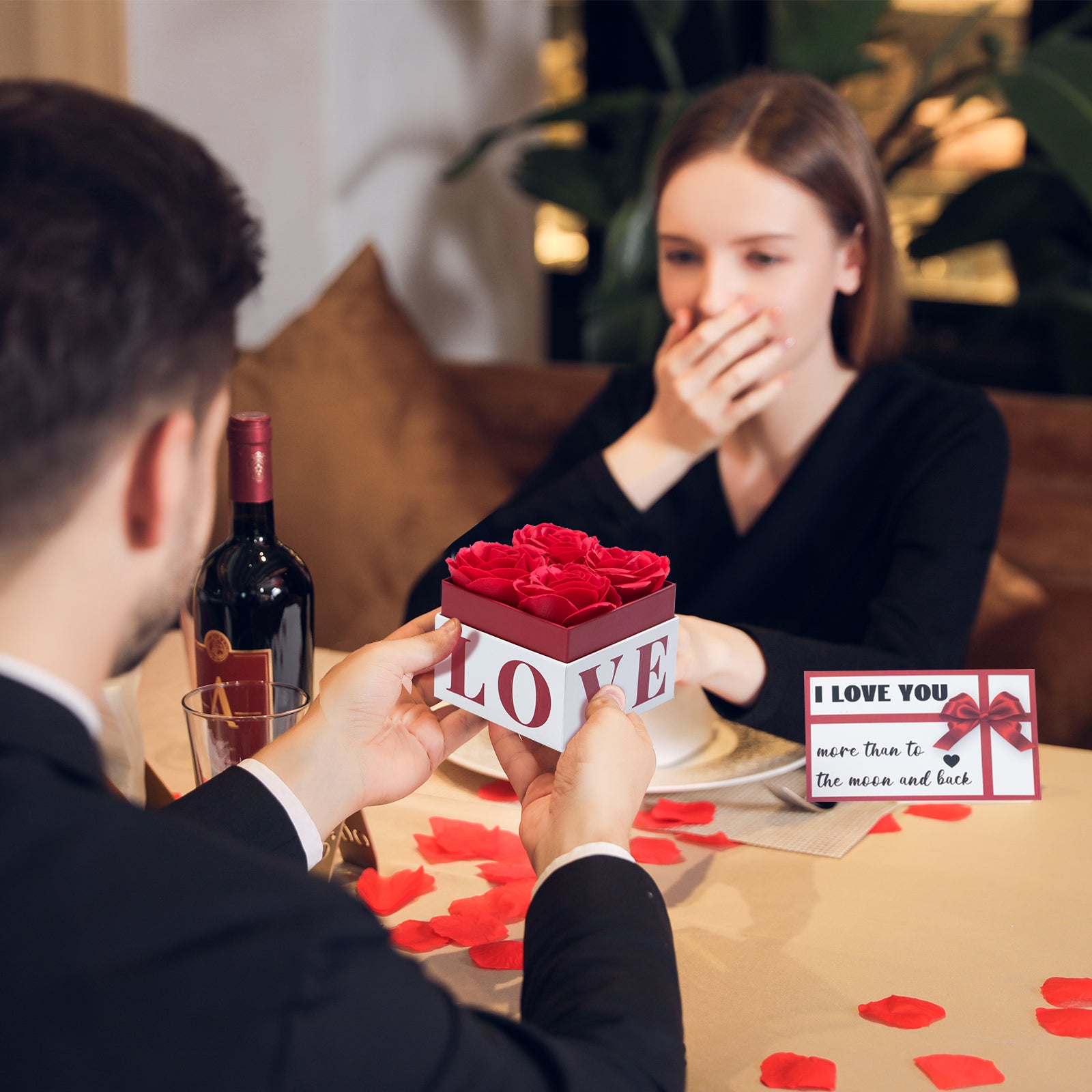 - U UQUI Valentines Day Gifts: As a brand that deeply cultivates flower gifts, love rose is the perfect valentines gift you've been looking for. 4 red roses in square box instead of rose bouquets are more ornamental and gift-like, matching the i love you card to help express your sincerity better.