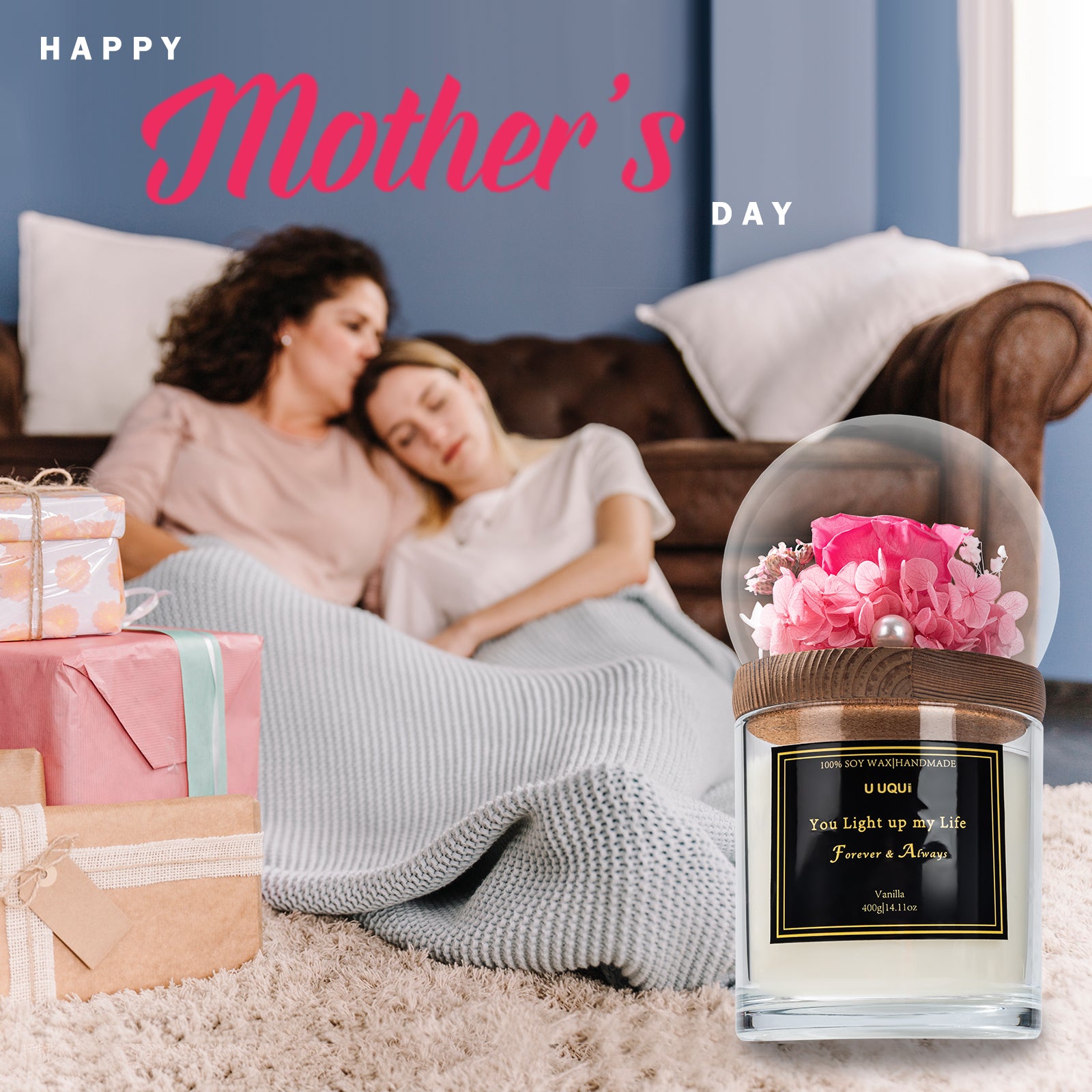 I just adore the idea of the ‘Forever Rose’ that can be admired and enjoyed for years. This arrangement in glass dome above the scented candle is adorable. I would love someone to gift this set to me. It has a fun presentation because of the cute box. The set includes the vanilla cupcake scented candle that had my son convinced I had baked cupcakes. (That’s cute.) The scent is hitting your nose as soon as you open the box. The set also includes a cute card.The candle can be enjoyed for about 70 hours and the rose can last 1-3 years, likely based on the user following the recommendations because that’s a window of time that matters. Naturally, I hope it lasts three years. This gift serves two purposes it is a decorative scented candle a forever rose that can last 1-3 years - a keepsake. The message on the candle relays that the person lights your life. That’s a touching sentiment to convey to someone you value.The rose and the accompanying flowers are beautiful and beautifully preserved. This set includes hydrangeas, baby breath and the rose. I don’t know what the little pink flowers are but they add color and beauty to the arrangement.Additionally, the dome is reusable and so is the jar the candle is in. The images provided by U UQUI are spot on. I look forward to ordering these for myself and as gifts for years.