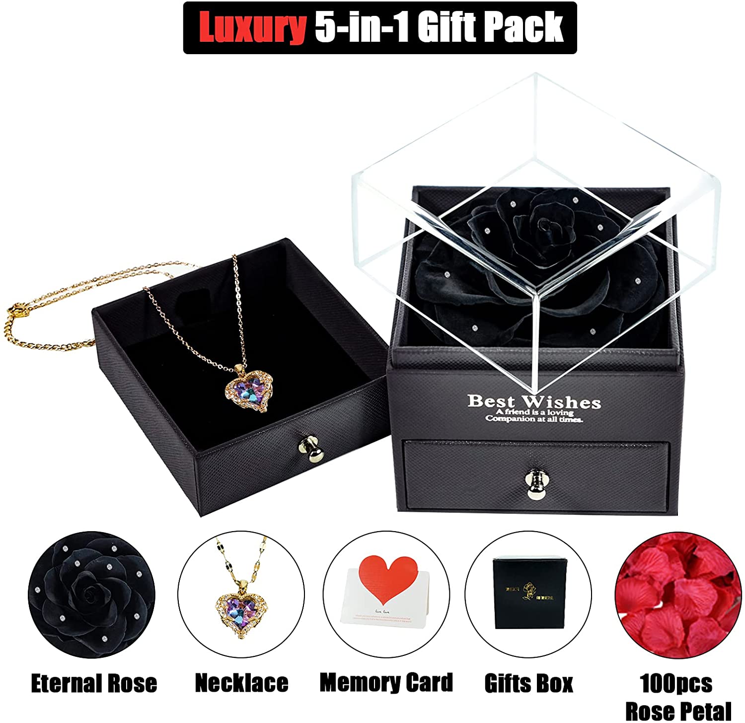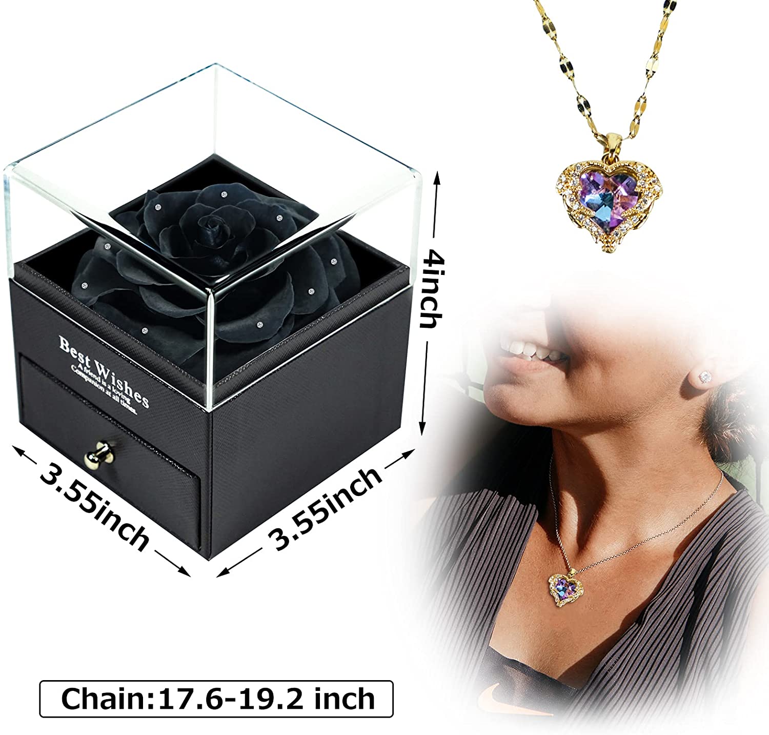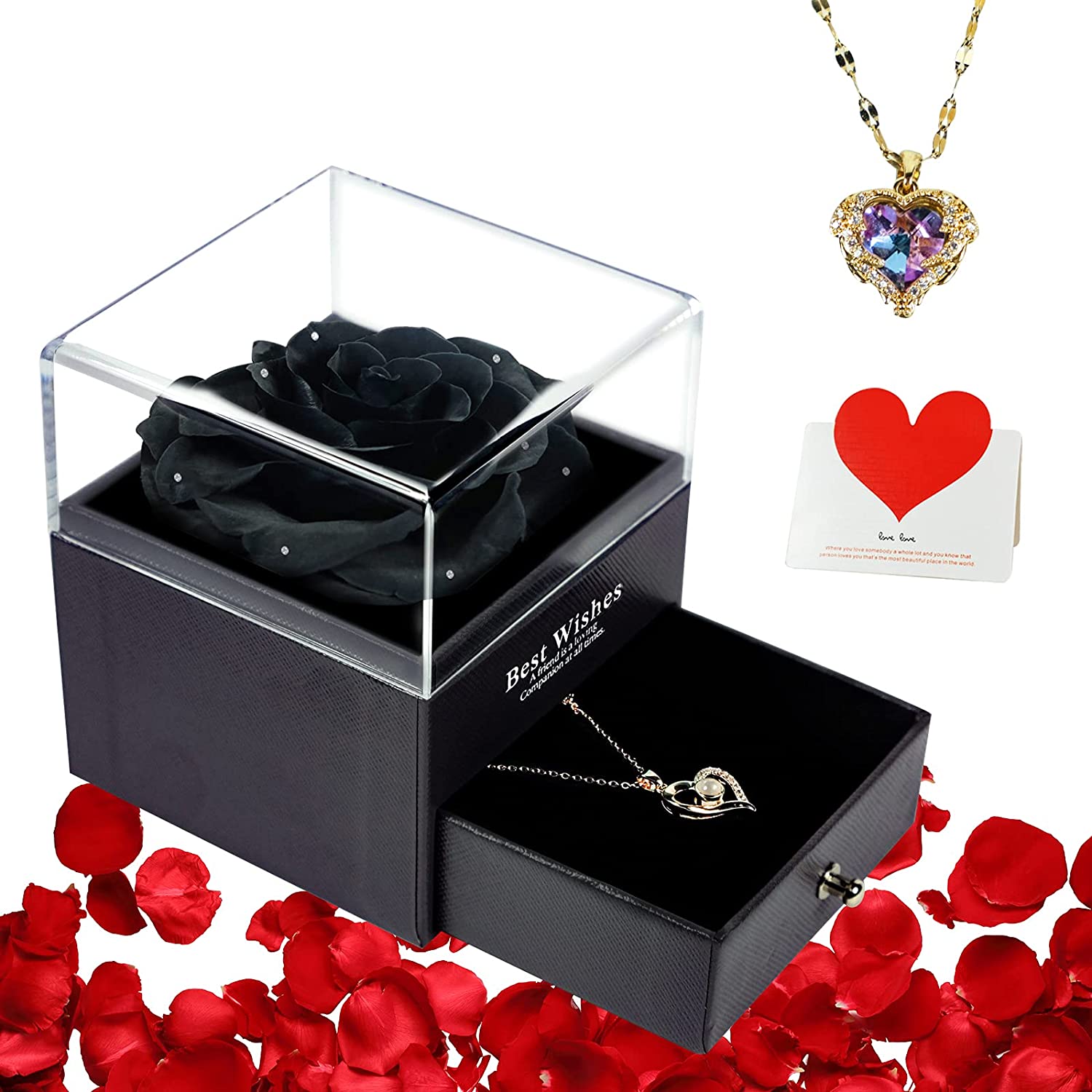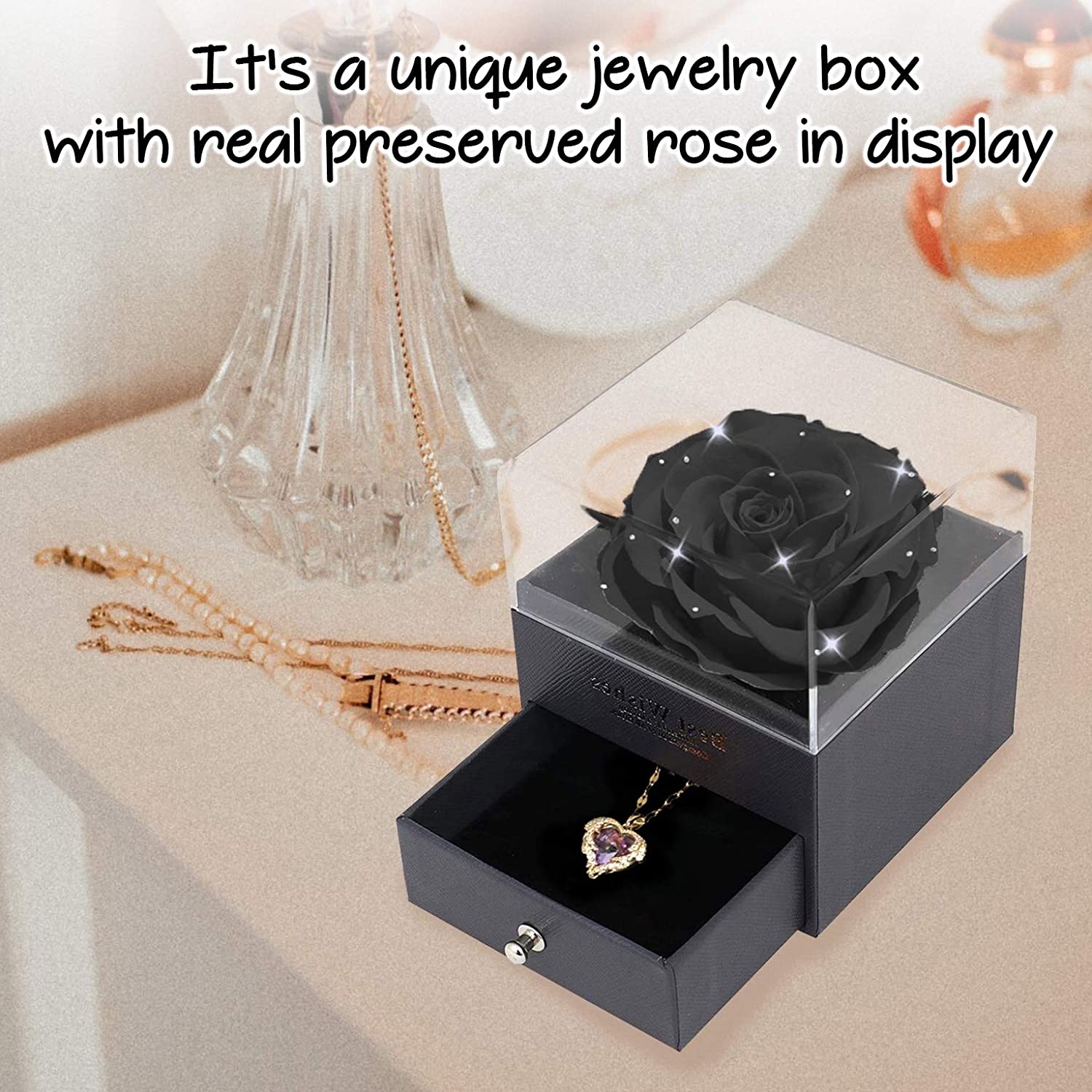 - 【Package Include】A beautiful real rose + a love note card(You can write anything you want on this card) + a 100 languages I LOVE YOU necklace in the drawer, the drawer can also store rings or other jewelry. Beautiful Gifts on Valentines Day, Mothers Day, Christmas, Birthday, Anniversary, Thanksgiving Day etc.